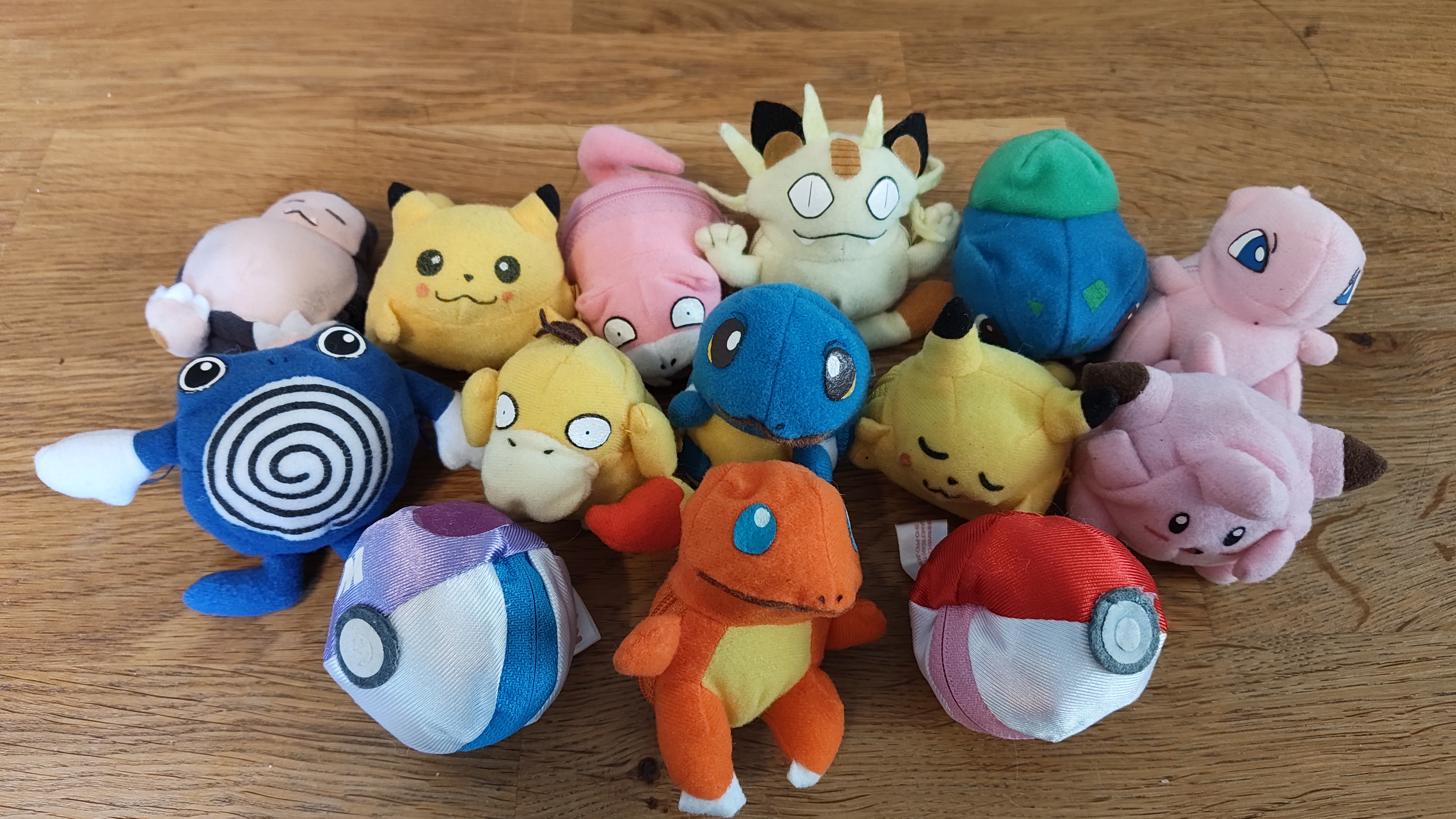 Photographs of Cas’s Pokémon plushies she received from E3 1998