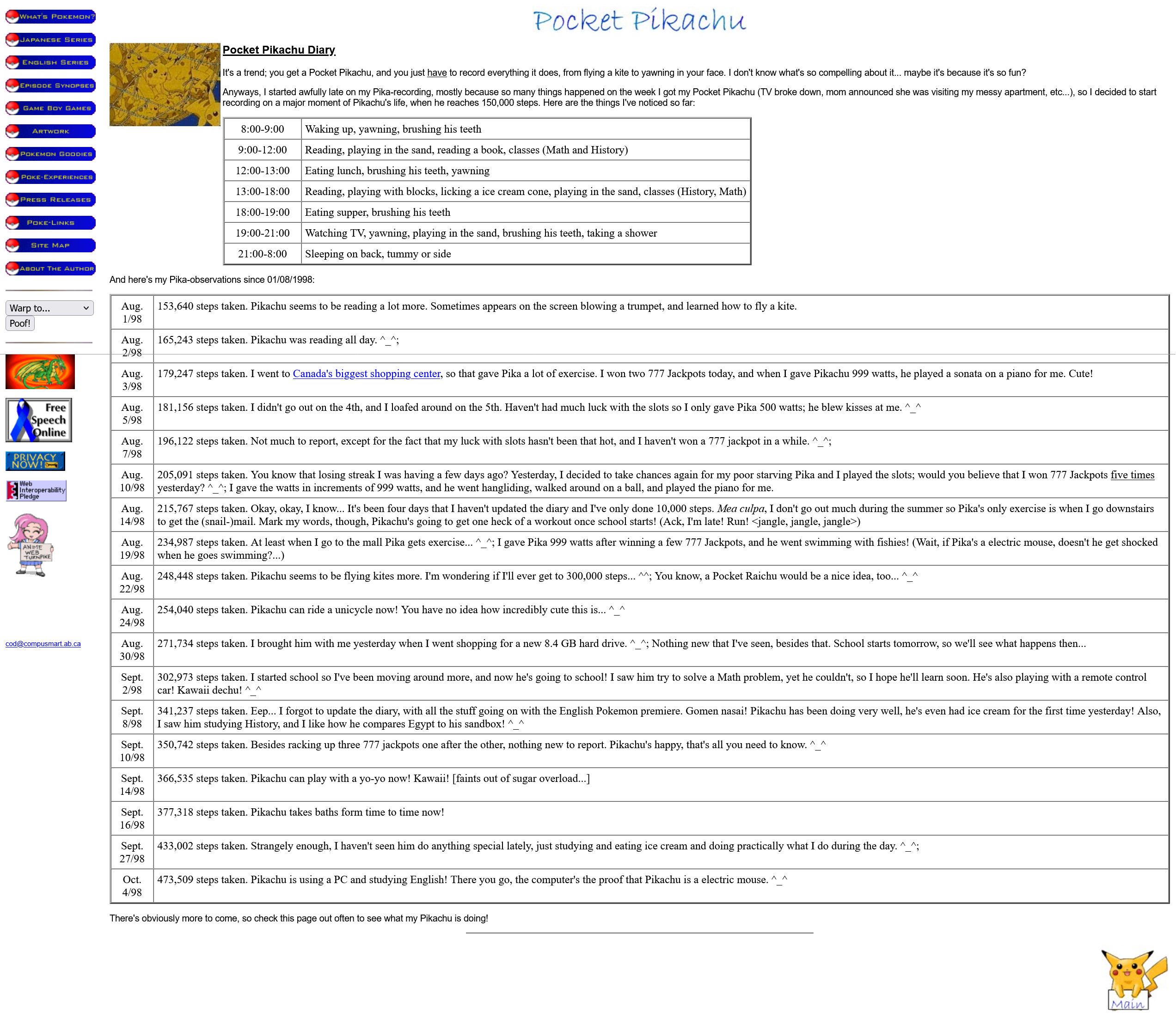One of my favourite pieces of content was your Pocket Pikachu Diary, where you kept a log of how your journey with the device was going. At the time of writing this interview, I have just walked one million steps with mine! I saw a lot of similarities with your diary and my own experiences with the product. What are your memories of writing it?