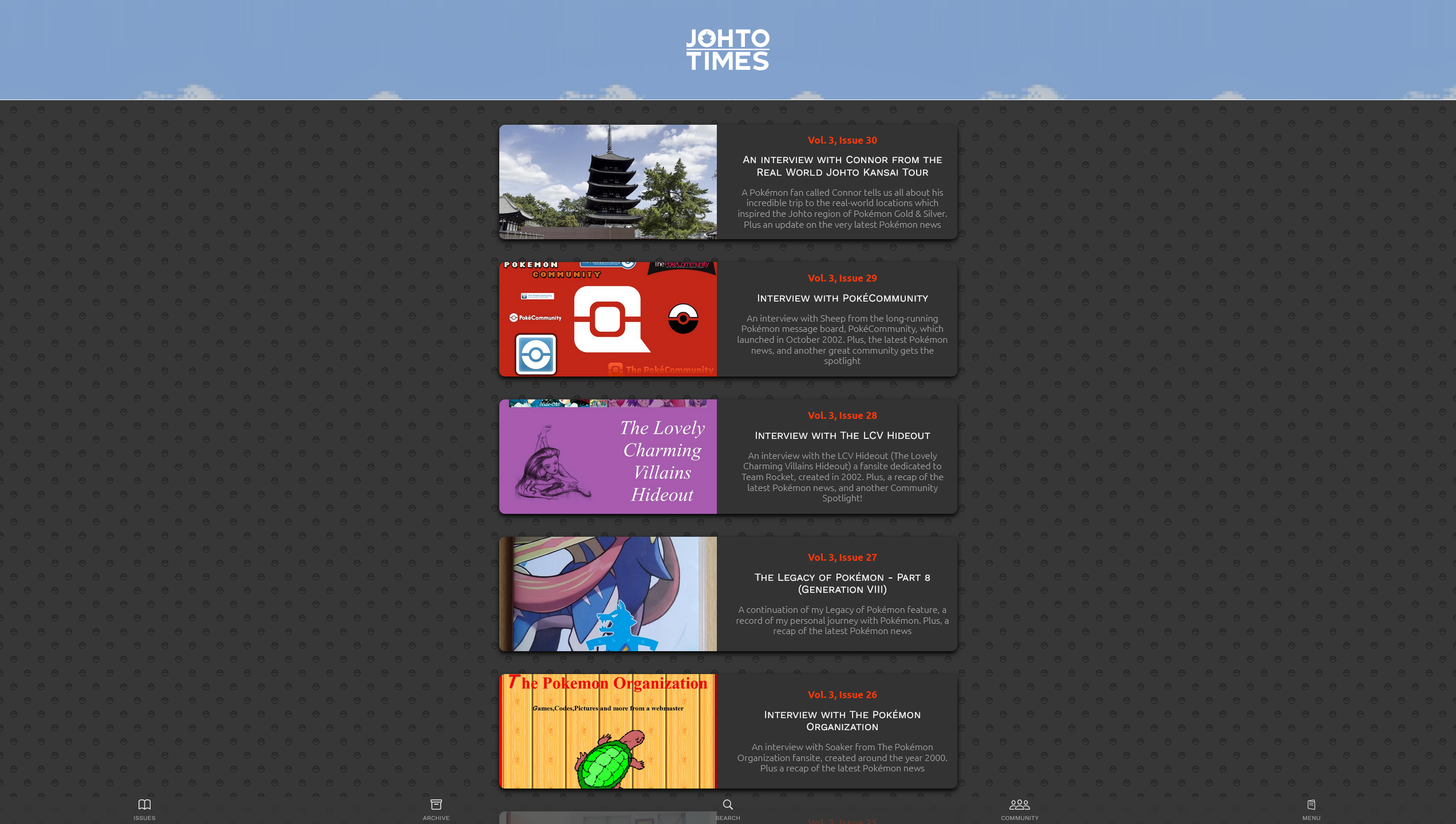 An interview with the Johto Times website team, discussing the creation and design of the website. Plus, a recap of the latest Pokémon news