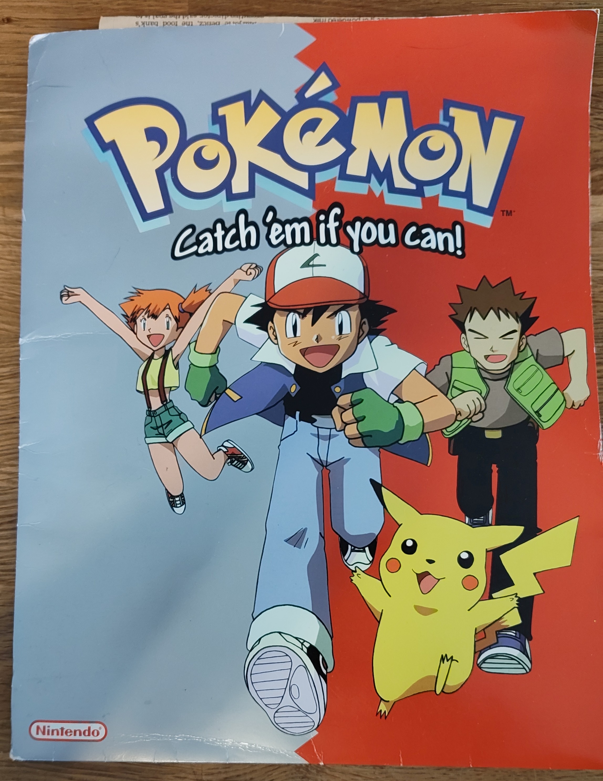 Cas’s Pokémon press kit obtained at E3 1998, which contains early information about Pokémon, including stickers featuring Pokémon with names that were changed upon release
